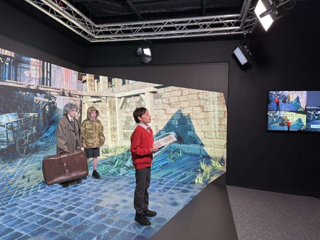 Next, pupils entered the Extended Reality (XR) production studio, a state-of-the-art filming space where they brought their movie trailers to life. Every team member had an essential role: the director briefed the actors and guided the vision, the producer supported the crew and kept filming on schedule, actors rehearsed and performed their scenes, the stylist dressed and prepared the cast, and camera operators and editors worked together to capture and refine the footage. The process demanded teamwork, creativity and clear communication, giving pupils a real sense of how professional productions operate behind the scenes.